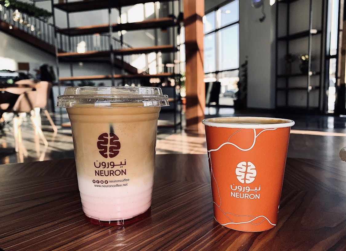 مقهى نيورون يقدم اطباق متنوعة من المشروبات الساخنة والباردة واطباق مختلفة من الحلويات