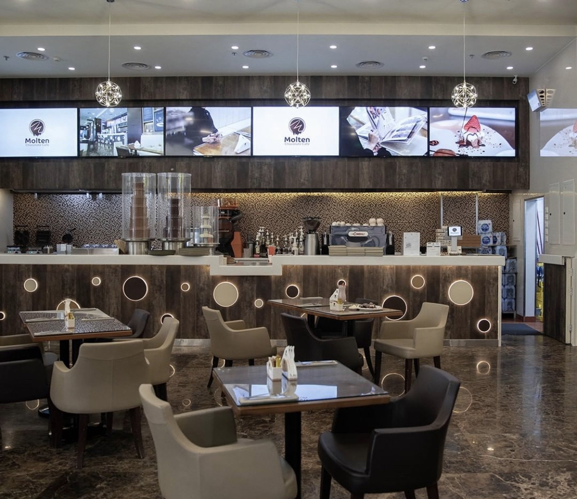مولتن شوكليت كافيه لتقديم اطباق متنوعة من الحلويات والمشروبات القائمة والباردة