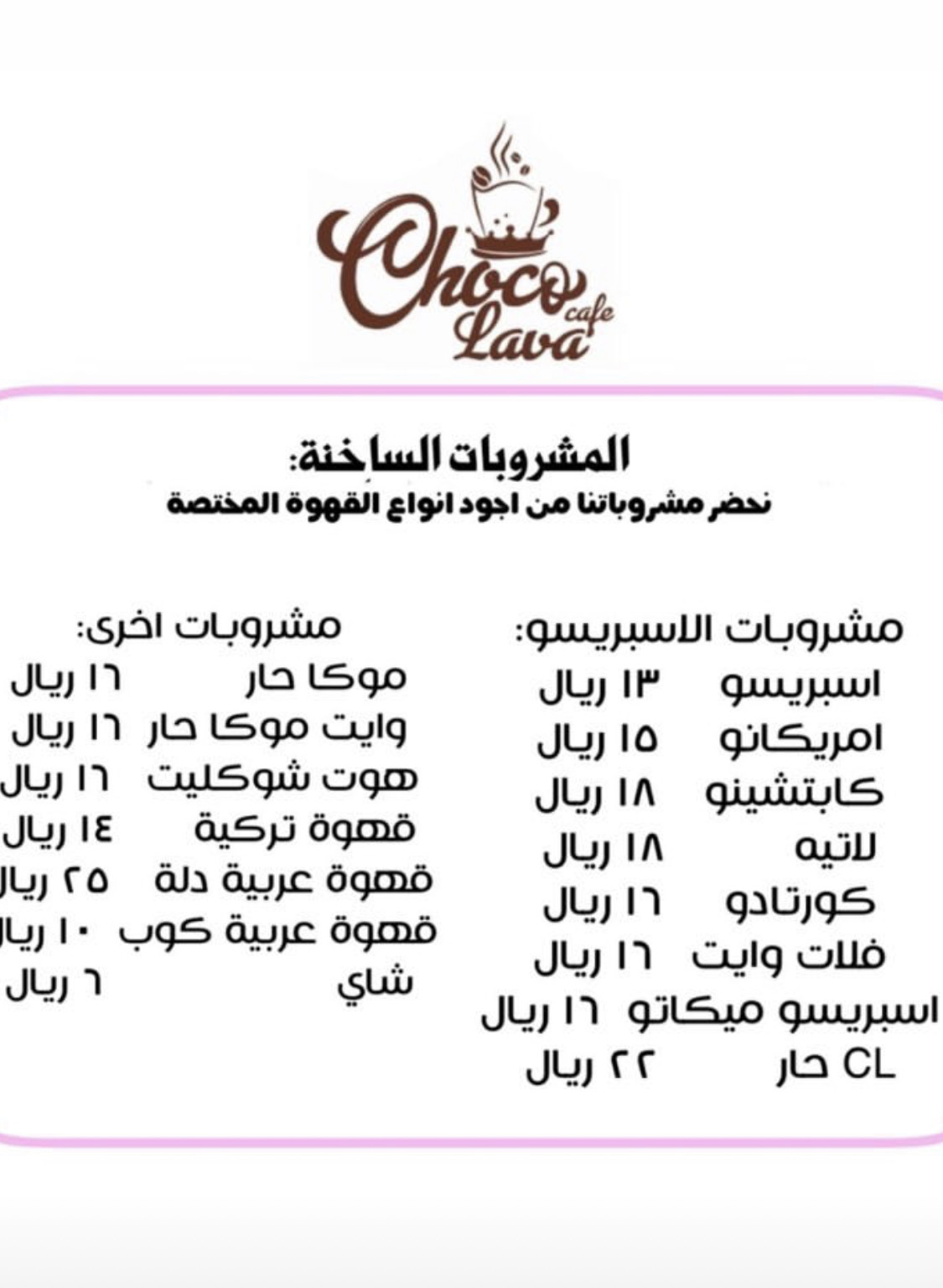شوكولاڤا كافيه يقدم اطباق مختلفة من الحلويات والمشروبات الساخنة والباردة واطباق متنوعة من الافطار