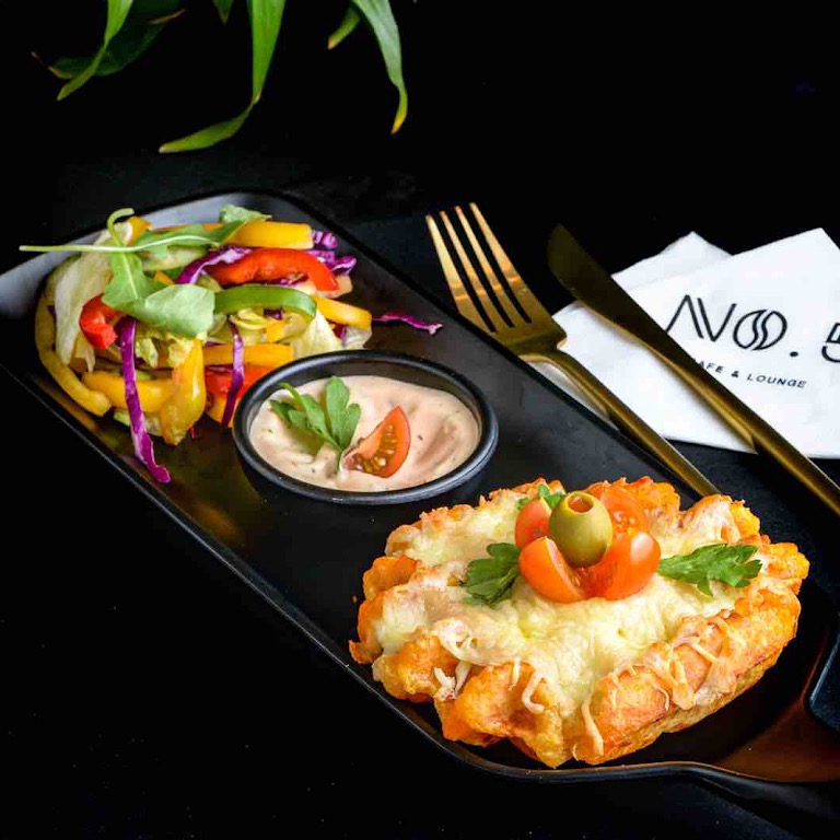 نمبر فايف كافيه متخصص في تقديم اطباق متنوعة من الحلويات والمشروبات الساخنة والباردة واطباق متنوعة من الافطار